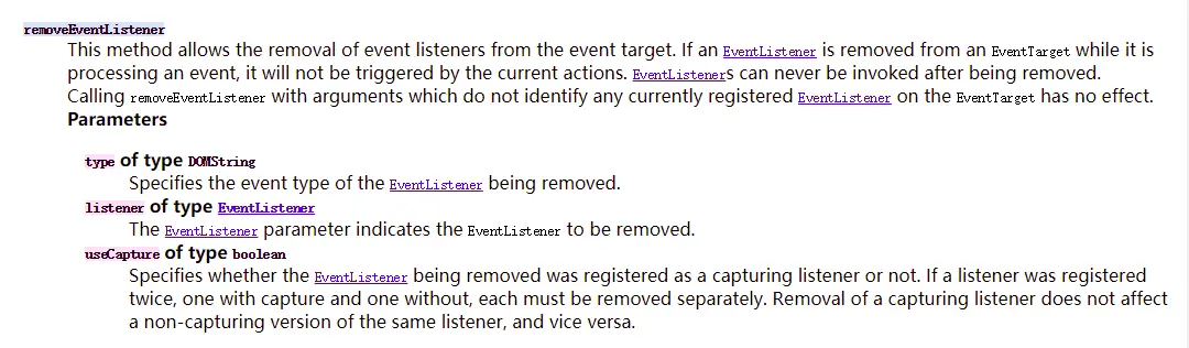 OK。事件绑定就此结束。下面说说取消事件绑定吧。如果要取消一个使用addEventListener绑定的事件函数,使用removeEventListener可以移除事件。
