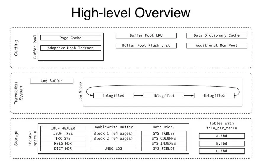 上面的所有的组件都是数据库服务层,接下来是数据库引擎层,当前主流的数据库引擎就是InnoDB。