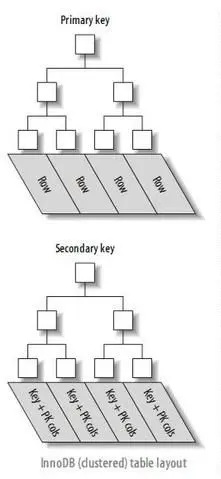 在Mysql的InnoDB中,有两种类型的B+树索引,一种称为聚簇索引,一种称为二级索引。