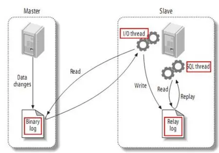 主从复制基于主节点上的服务层的日志实现的,而从节点上有一个IO线程读取这个日志,然后写入本地。另有一个线程从本地日志读取后在从节点重新执行。