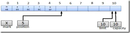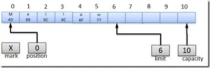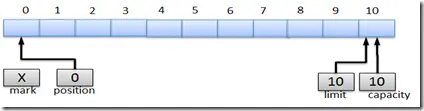 - 标记Mark:备忘位置,调用mark()来设定mark=position,调用reset()设定position=mark