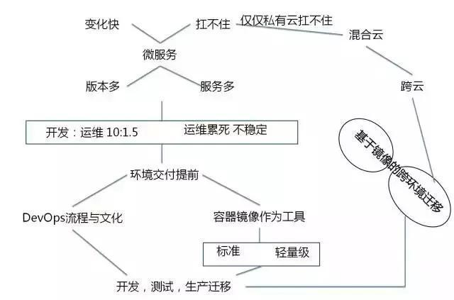 所以这个时候是应该使用容器,使得对于环境的部署这件事情提前到开发阶段来做,开发人员不能做甩手掌柜,而从开发完代码的时候,就要关心环境的配置,生成容器镜像。
