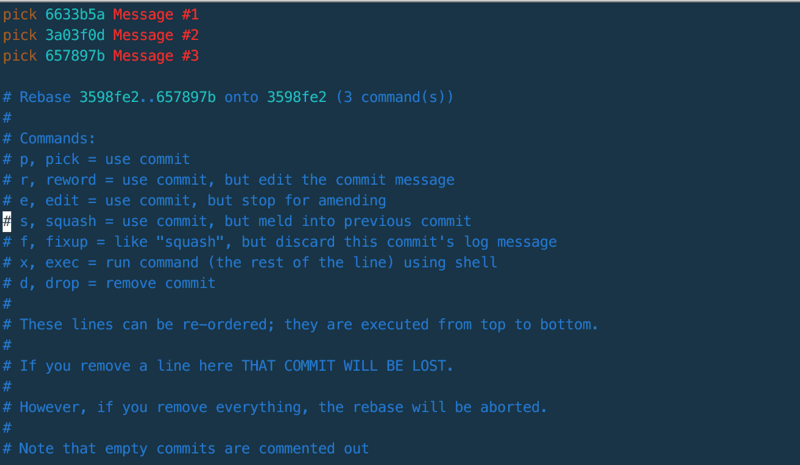 这精确定义了 rebase 执行后分支的确切内容。通过重新排序实体,可以使历史记录看起来像您想要的任何内容。例如,可以使用 fixup ,squash ,edit 等命令代替 pick。