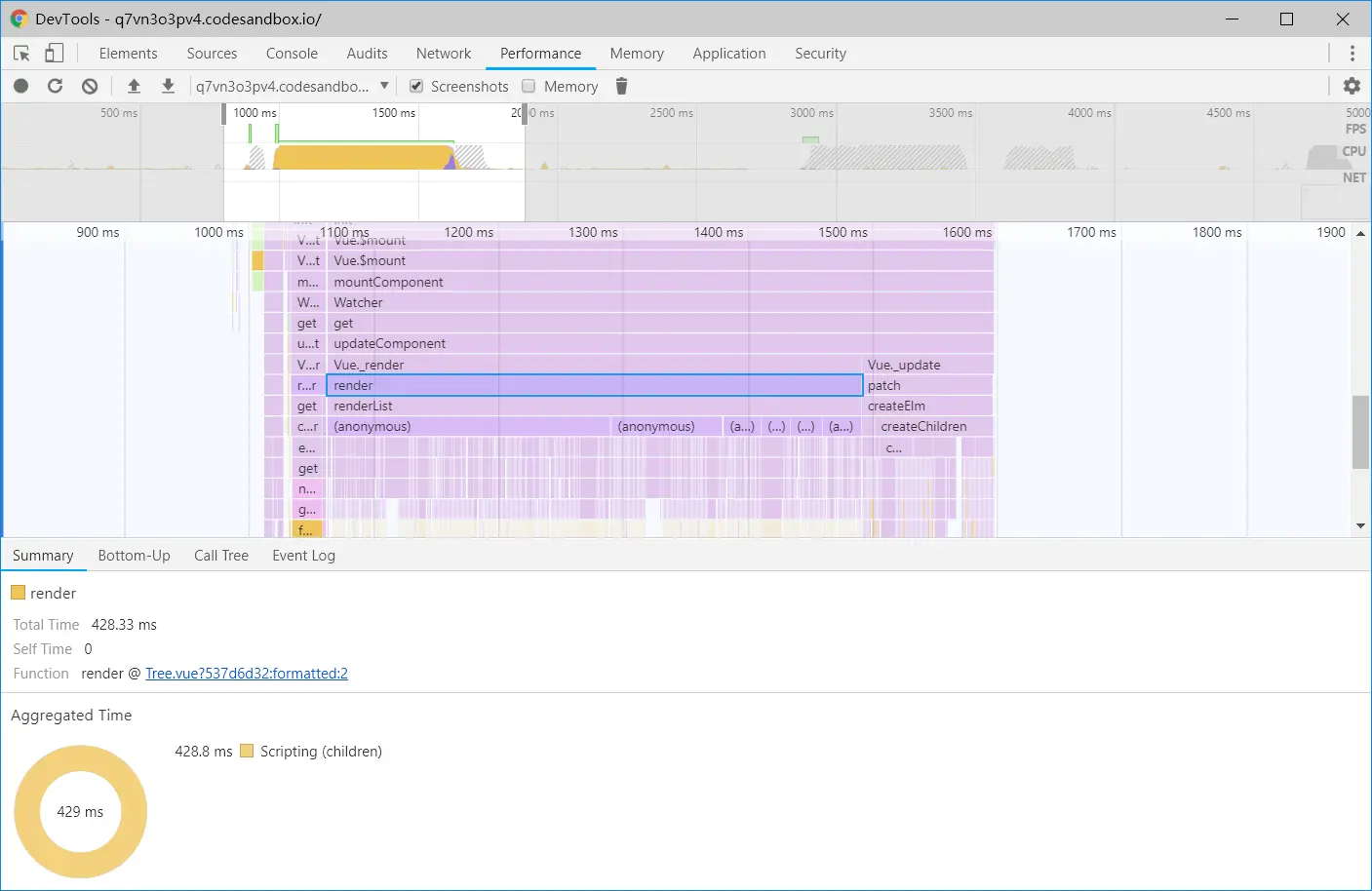 一切准备就绪,为了度量 Tree 组件的运行性能,我们设定了两个指标。
