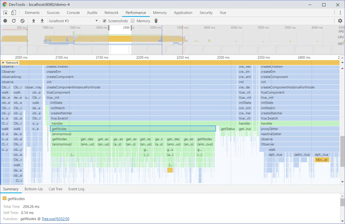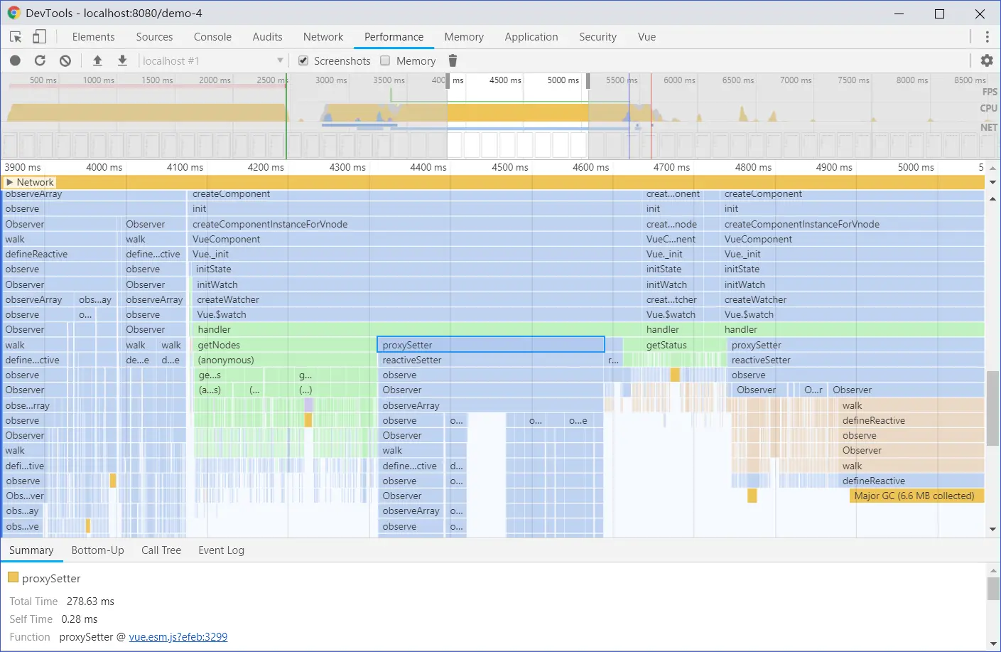 查看 Performance 工具,getNodes 方法后已经没有 proxySetter 了。