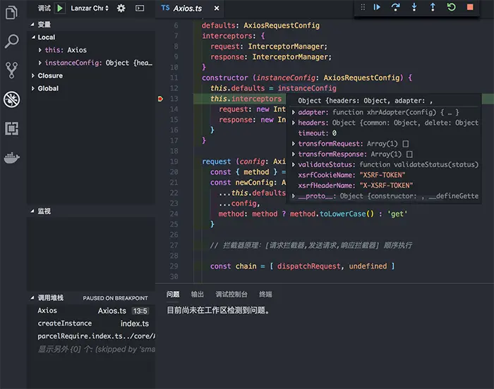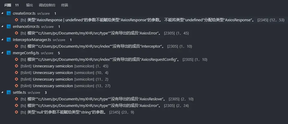 另外可以通过,vscode 的 控制面板中的问题 tab 迅速查看当前项目问题所在。
