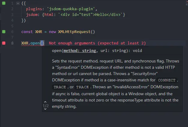 - 希望引入浏览器环境,可在 quokkajs 项目目录全局安装jsdom-quokka-plugin插件