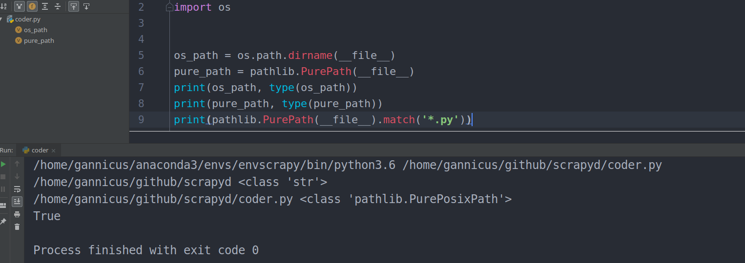 为什么我要拿这个来举例呢?再深入想一下 pathlib.PurePath 后面能够跟着 match,那说明它应该是个对象,而不是一个路径字符串。为了验证这个想法,把代码改一改: