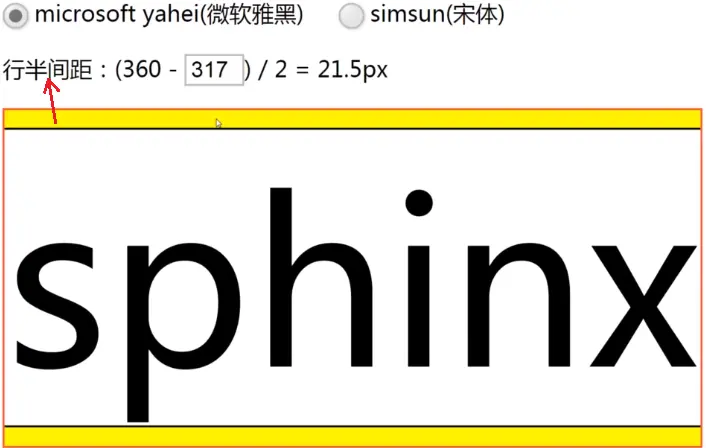 测试:font-size=240px,line-height=360px,分别计算行半间距。如图: