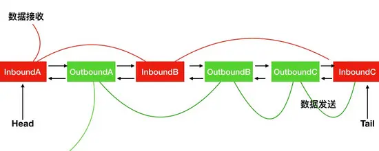 前面介绍了Handler包含了Inbound和Outbound两种,他们统一放在一个双向链表中: