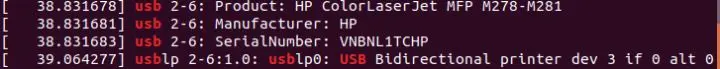 $ lsusb该命令返回 “Bus 002 Device 004: ID 03f0:ad2a Hewlett-Packard” —— 这没有太多价值,但可以得知打印机已连接。我可以通过输入以下命令获得有关打印机的更多信息: