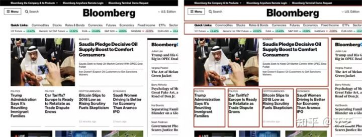 △ 图中标注了Bloomberg是如何对界面信息进行组块。