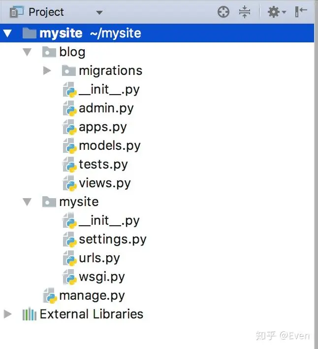 python manage.py startapp blog此时目录结构如下: