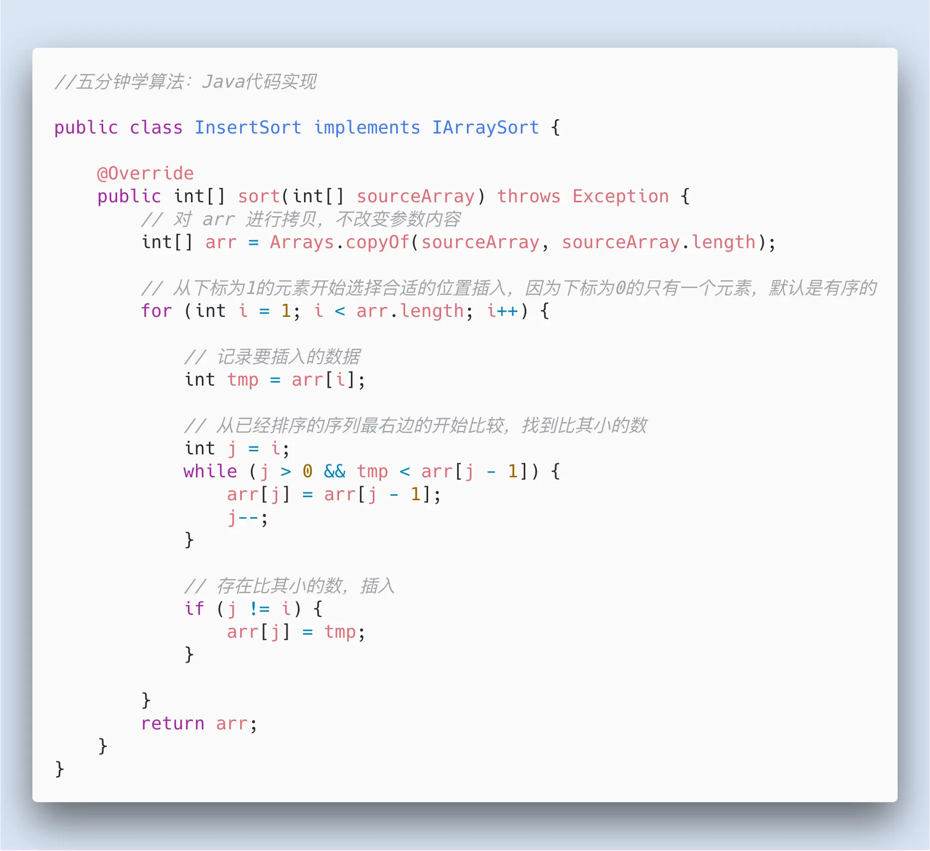 插入排序的代码实现虽然没有冒泡排序和选择排序那么简单粗暴,但它的原理应该是最容易理解的了,因为只要打过扑克牌的人都应该能够秒懂。插入排序是一种最简单直观的排序算法,它的工作原理是通过构建有序序列,对于未排序数据,在已排序序列中从后向前扫描,找到相应位置并插入。