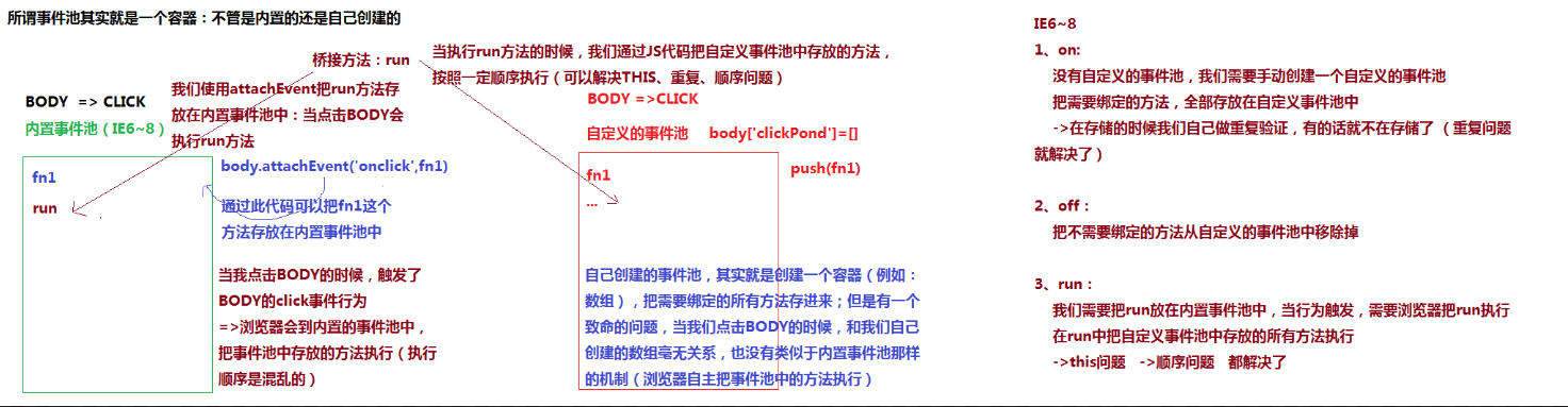 //=>DOM2事件绑定需要我们养成‘未雨绸缪’的能力,绑定方法的时候尽量不用匿名函数,为后期可能会把方法在事件池中移除掉做准备