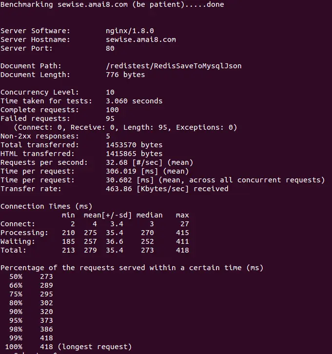 - ab -n 100 -c 10 "test.com/"