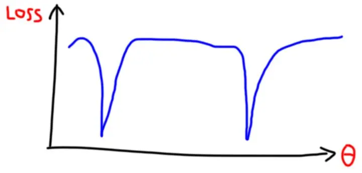 但是,这样仍然有问题。例如下面的情况下,就容易会去对两个谷对应的 取平均,那么得到的会是很差的参数。