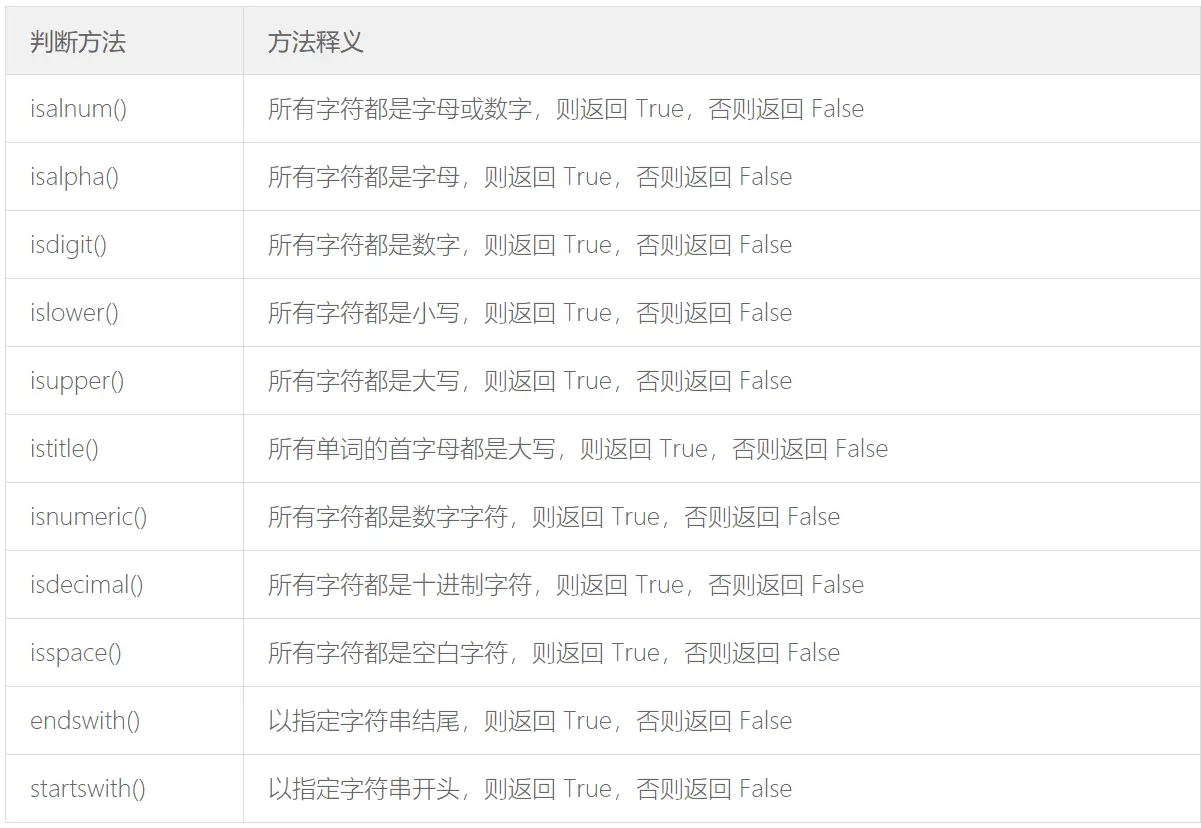 判断字符串是否(只)包含某些字符内容,这类使用场景也很常见,例如在网站注册时,要求用户名只能包含英文字母和数字,那么,当校验输入内容时,就需要判断它是否只包含这些字符。其它常用的判断操作,详列如下: