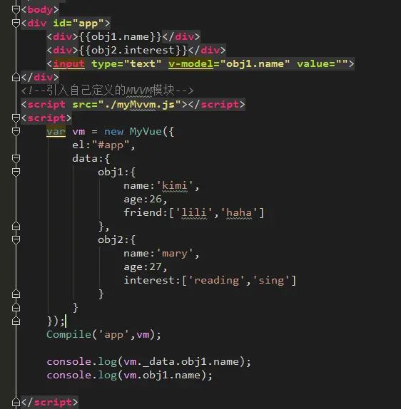 我们已经完成对数据的劫持,也实现了this对数据的代理,name接下来做的是怎么把数据编译到我们的dom节点上,也就是在View层展示我们的数据。