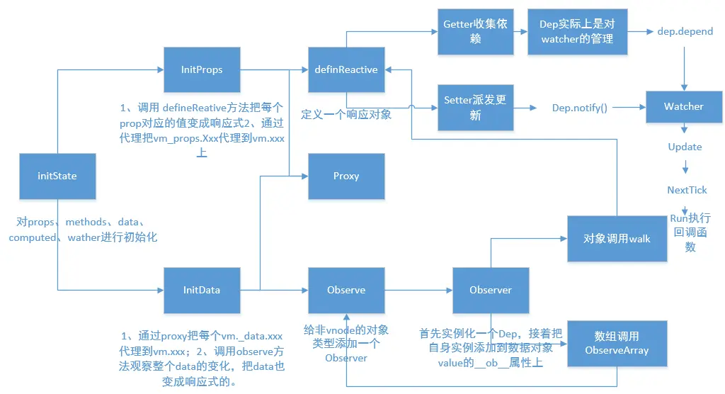 - 在设置新值时,也执行了一遍observe方法,是为了实现深度响应,因为在赋值的时候可能会赋值一个引用数据类型的值。
