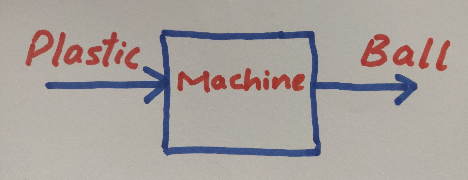 Assume we have a machine which takes plastic of any shape and any colour as input and produces a perfectly round plastic ball of the same colour as output.