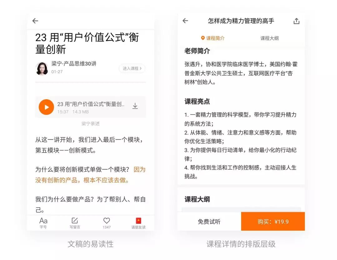 右图标题和正文内容进行视觉上的层级区分,用户可以一眼看出重点,减少了用户阅读压力。
