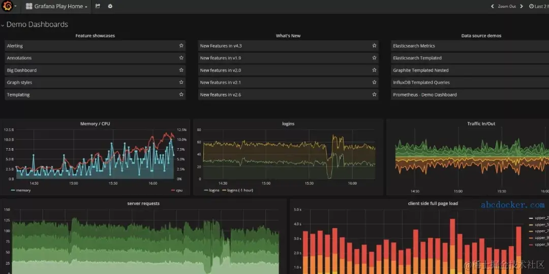 Grafana目前使用比较广泛,它的数据可视化的展示功能非常强大,我们可以通过influxdb监控,Prometheus采集的主机信息,而且还不需要安装任何绘图插件,只需要将需要的数据加入到它的数据源中即可,然后通过内置的插件来展示你所需要的数据。