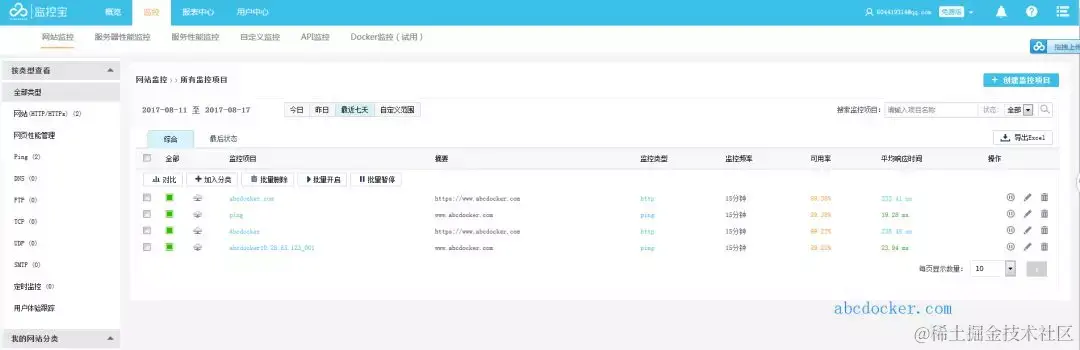 阿里云监控是一款免费网站监控产品,可监控站点和服务器,并提供多种告警方式:短信,旺旺,邮件。