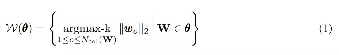 单元剪枝 [6],考虑权重矩阵列向量的 L2 范数: