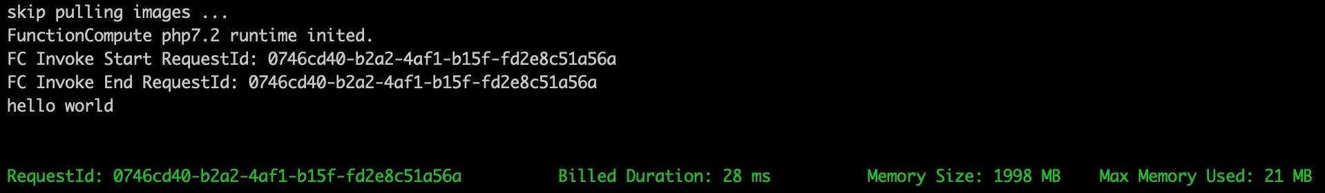 FunctionCompute php7.2 runtime inited.