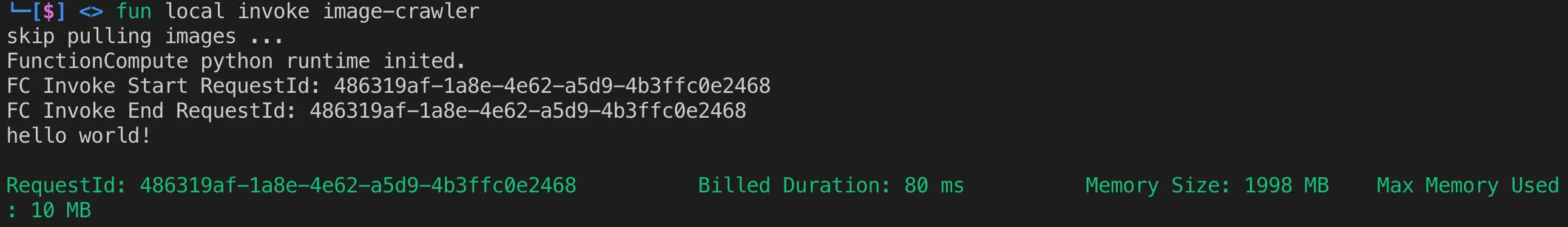 | fun local invoke image-crawler