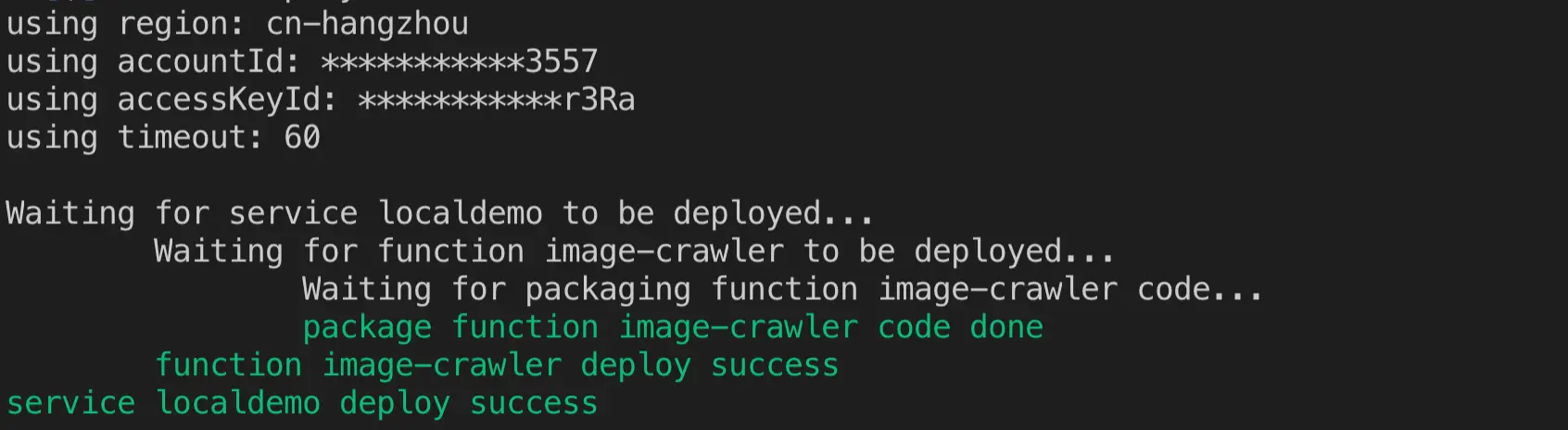 然后,使用 fun deploy 后,可以看到部署成功的日志。
