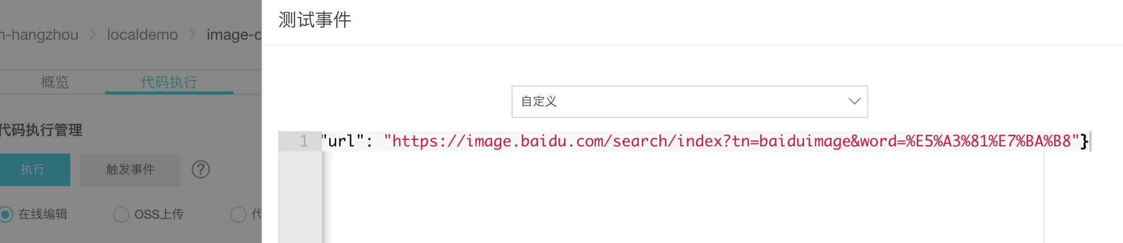 在触发事件中,写入我们用来测试的 json,然后执行: