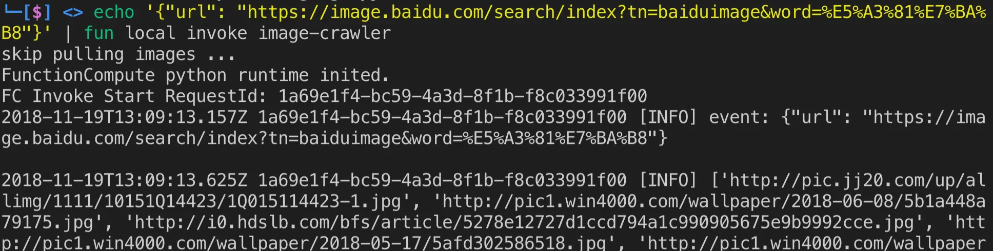 fun local invoke image-crawler