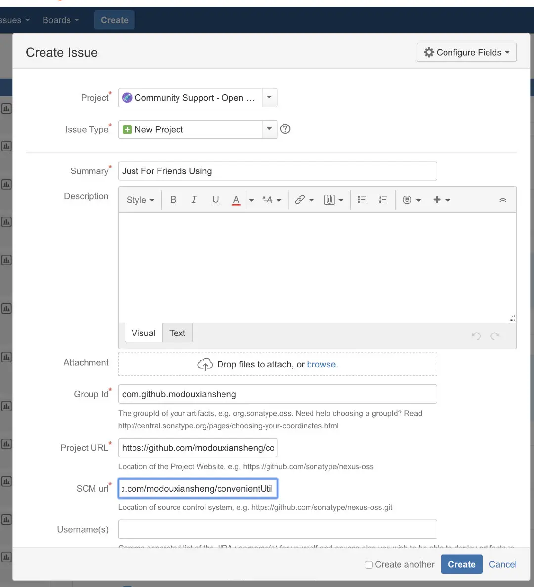 Summary:描述自己包的作用Description:可写可不写,也是具体描述的Group Id:填写自己的github地址Project URL:填写你的项目的github地址就可以了SCM url:同样的我填写的也是github的地址