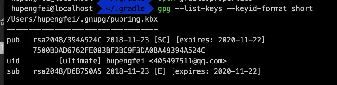 signing.secretKeyRingFile=在之前用gpg --list-keys --keyid-format short输出秘钥信息时,有个路径。
