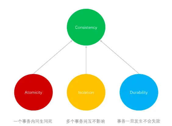 在我的理解中,原子性(A)、隔离性(I)、持久性(D)是为达到一致性(C)而存在的。