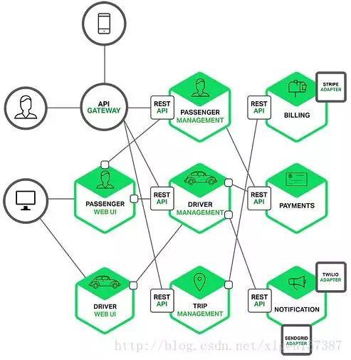 一个微服务一般完成某个特定的功能,比如下单管理、客户管理等等。每一个微服务都是微型六角形应用,都有自己的业务逻辑和适配器。一些微服务还会发布API给其它微服务和应用客户端使用。其它微服务完成一个Web UI,运行时,每一个实例可能是一个云VM或者是Docker容器。