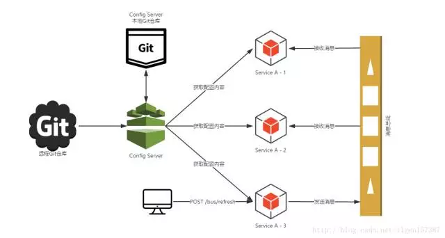 一种最简单的方式重新一下Config Client进行重新获取,但Spring Cloud绝对不会让你这样做的,Spring Cloud Bus正是提供一种操作使得我们在不关闭服务的情况下更新我们的配置。