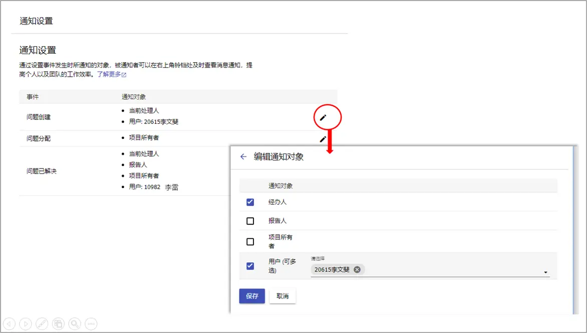 - 新增站内信通知功能:用户可以在组织层对问题创建、问题分配、问题解决3个事件分配对应的通知对象。