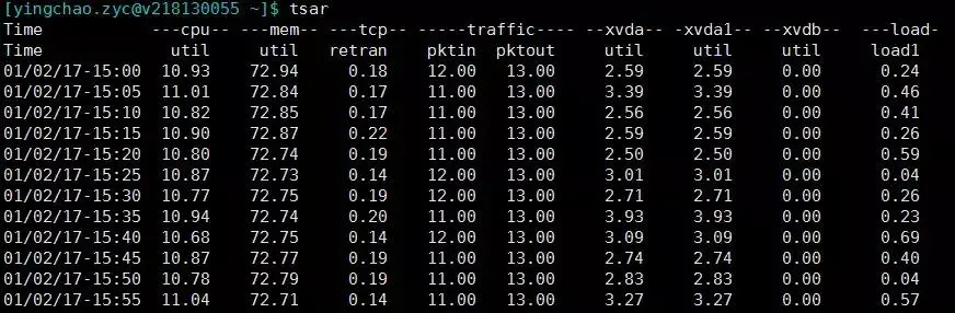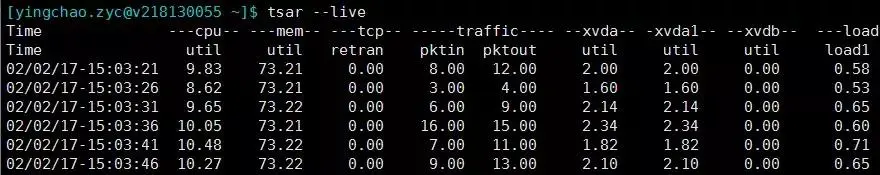 tsar --live ###可以查看实时指标,默认五秒一刷