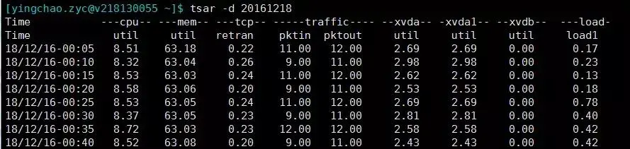 tsar -d 20161218 ###指定查看某天的数据,貌似最多只能看四个月的数据