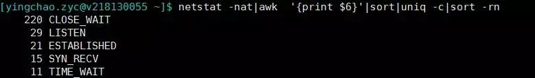 #查看当前连接,注意close_wait偏高的情况,比如如下
