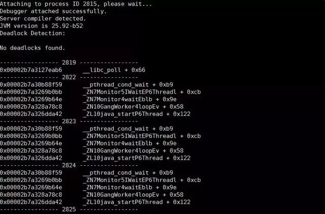sudo -u admin /opt/taobao/install/ajdk-8_1_1_fp1-b52/bin/jstack -m 2815