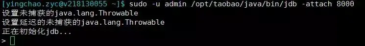 sudo -u admin /opt/taobao/java/bin/jdb -attach 8000.