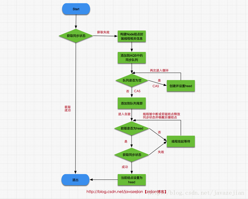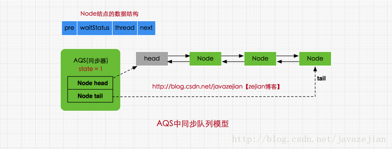 AQS:AbstractQueuedSynchronizer队列同步器,它用一个32位的整形来表示目前线程的同步状态, 可以通过以下几个方法来读取,设置和修改这个状态:getState(),setState(),compareAndSetState().