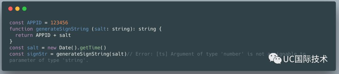 使用者希望把 timestamp 用作 salt,但是 signStr 并不是意料中的由 timestamp 和 appId 拼接而成的 signString, 而是 appId 和 timestamp 相加的运算结果。而这种错误是在编译时无法感知的。