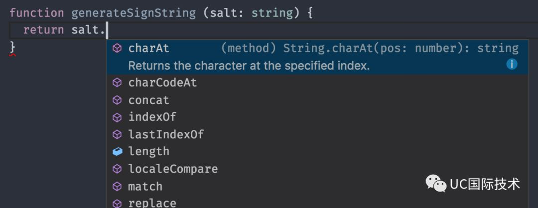 在编译时,就会抛出类型错误的提示,这时就会知道,你的 salt 应该用一个 toString() 来转换成字符串。