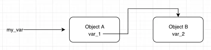 如果我们将my_var 指向其他内存地址,比如说my_var = None,这时候ObjectA的内存地址没有被引用,因此被销毁,这导致var_1也被跟着一起销毁,ObjectB的内存地址也在此时没被引用,被销毁