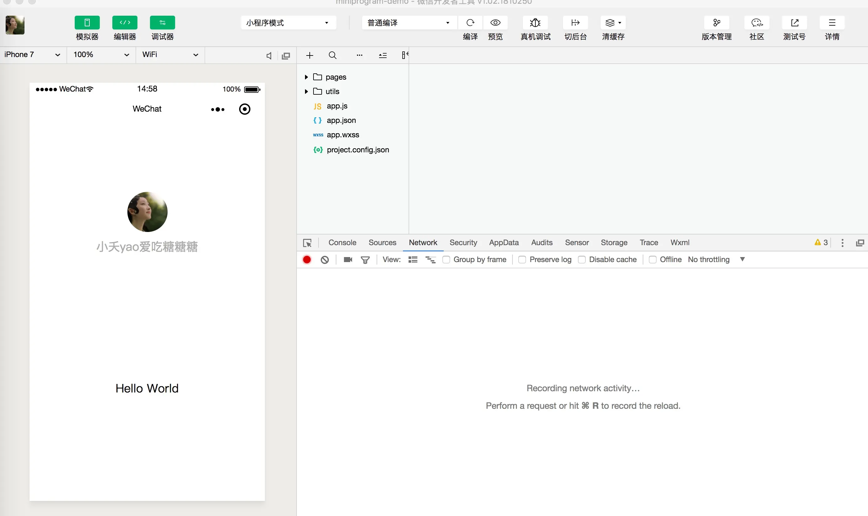 小程序初始化后,本身的代码里面已经写好了授权的部分。需要注意的是 wx.getUserInfo 接口直接弹出授权框将不再支持,而是用button组件引导用户点击后弹出授权框。详情。用户授权之后调用wx.getUserInfo可以拿到用户信息。